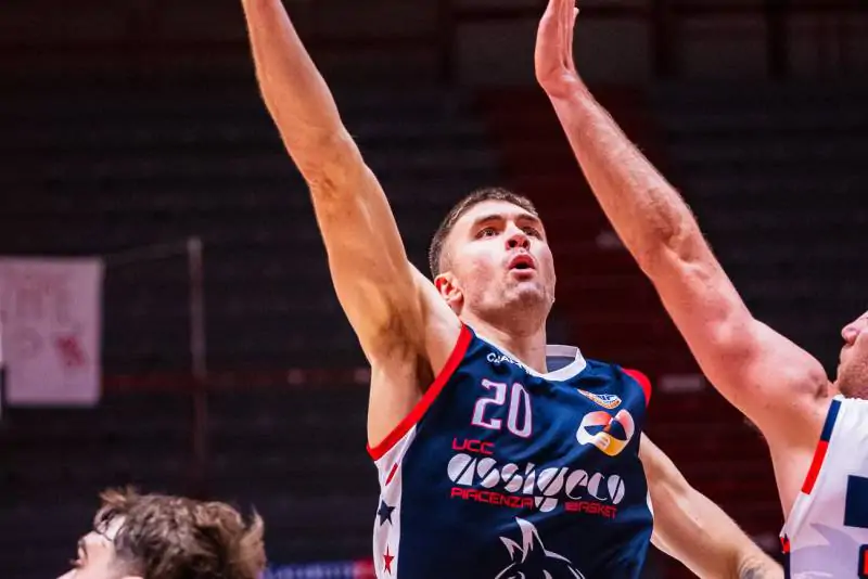 UCC Assigeco Piacenza: Lorenzo Calbini 12 /6/9, 0/2), Andrea Mazzucchelli 3 (1/3, 0/0), Giovanni Poggi 7 (3/7, 0/1), Massimiliano Ferraro 12 (3/4, 1/1), Dalton Pepper 7 (1/4, 1/5), Leonardo Valesin 12 (2/5, 2/4), Martino Criconia 5 (1/2, 1/4), Gianmarco Fiorillo 2 (0/1, 0/0), Joaquin Sarmiento 2 (1/1, 0/4), Kuot Yak Deng Kuot 0 (0/1, 0/0), Gabriele Cattivelli 0 (0/1, 0/0), Pietro Reginelli NE