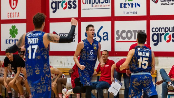 La squadra di coach Galetti ha alzato le braccia al termine dello scontro toscano, con un 63-74 frutto di una gara comandata fin dall’inizio grazie alle prove da 20 punti e 10 rimbalzi per Giorgi (alla seconda doppia doppia stagionale) e da 19 punti con un ottimo 8/11 da 2 punti per Casagrande.