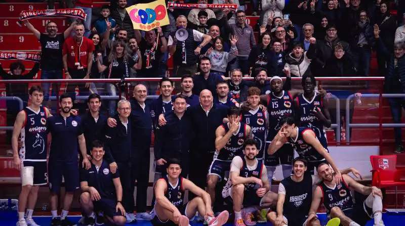 UCC Assigeco Piacenza: Leonardo Valesin 16 (5/7, 2/4), Lorenzo Calbini 23 (5/7, 4/7), Dalton Pepper 11 (1/2, 3/5), Giovanni Poggi 10 (3/3, 1/2), Simon Anaekwe 8 (3/5 da due); Andrea Mazzucchelli 0 (0/2 da due), Gianmarco Fiorillo 10 (1/3, 2/3), Martino Criconia 6 (0/1,1/2), Massimiliano Ferraro 0 (0/4 da tre), Joaquin Sarmiento 11 (2/2, 2/2), Kuot Yak Deng Kuot 0, Gabriele Cattivelli 0. Allenatore: Simone Lottici (assistenti: Roberto Villani, Luca Ogliari).