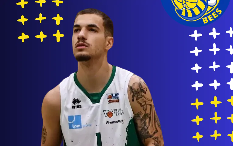 Cecchinato arriva ai Bees dopo l’esperienza con Orlandina Basket, dove nella stagione 2024/2025 ha disputato 38 partite di campionato viaggiando a 7,8 punti di media. Nella stagione precedente aveva indossato la maglia della Virtus Padova, chiudendo l’annata con 12 punti di media a gara.