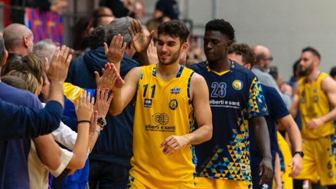 E’ capitan Ricci a inaugurare il secondo tempo con due iniziative sotto le plance, ma Romano con 5 punti personali mantiene il +5 per la squadra di coach Bartocci. 46-50 al 24’. Zampogna inventa un’altra tripla dall’angolo sugli sviluppi di uno schema dalla linea di fondo, ma Voltolini con due triple rende forse più di pan per focaccia e ricuce a -3 al 26’. 52-55.
