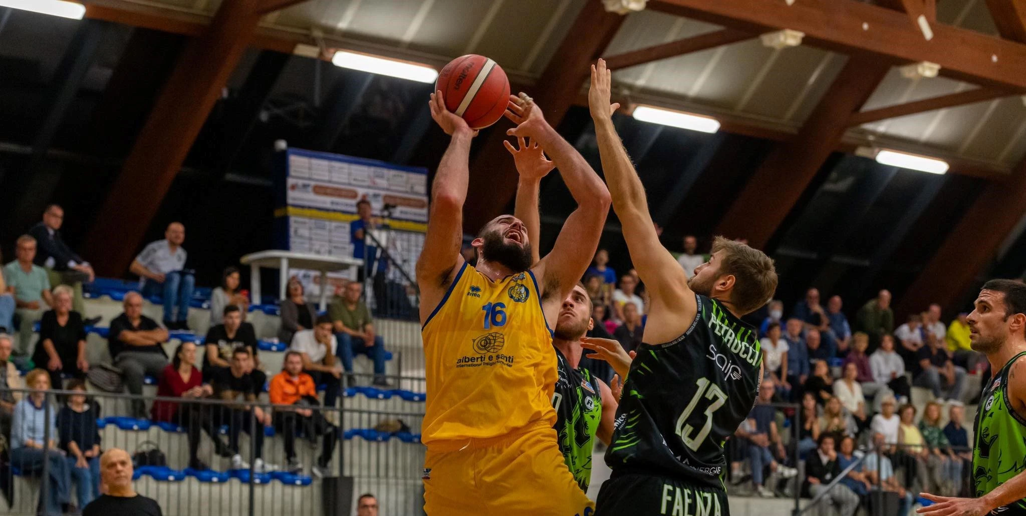 Casagrande è chirurgico a convertire i liberi sul fallo antisportivo fischiato a Petrucci, con Faenza che si affida al jumper dalla media distanza di Aromando per il 37-32 al 16’.