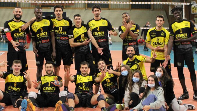 Contro la terza forza del campionato, la squadra di coach Gabriele Bruni (ex di turno insieme al palleggiatore Thomas Ramberti) ha saputo imporre il proprio gioco, dominando la scena soprattutto agli estremi del match, mentre la fase centrale è stata più equilibrata. A premiare i gialloneri è stata la fase break, con una prestazione superlativa in battuta (15 punti, 8 dei quali di Miranda) e a muro (10 block vincenti, di cui 4 firmati da Fall).