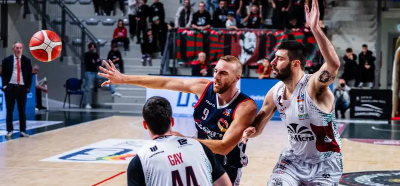 Paffoni Fulgor Basket Omegna: Flavio Gay 9 (3/7 da tre), Giacomo Baldini 9 (0/4, 2/5), Andris Misters 20 (3/5, 4/5), Federico Casoni 10 (1/1, 2/6), Michael Sacchettini 2 (1/4 da due); Emanuele Trapani 16 (5/6, 2/4), Alessandro Voltolini 6 (2/2 da due), Manuel Di Meco 12 (3/4, 2/3), Jacopo Balanzoni 11 (4/10 da due), Tobia Strino 3 (1/1 da tre), Leonardo Caramelli 0, Kalyan Angelori 0. Allenatore: Riccardo Eliantonio (assistenti: Francesco Petricca, Paolo Verri).