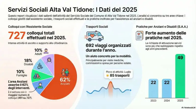 “Un bilancio che dai numeri certifica un impegno attento e costante a sostegno della comunità locale, a partire dalle fasce più in difficoltà della popolazione e dagli anziani”. Così viene sintetizzata la relazione sulle attività dei servizi alla persona del Comune di Alta Val Tidone nel corso del 2025 che evidenzia anche la possibilità di “condividere i vari presidi sociali in cui l’Amministrazione è impegnata, agevolando così un’articolata e qualificata presenza dei servizi a vantaggio della comunità”.