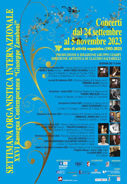 Domenica 24 settembre ha inizio, come da tradizione, la Settimana Organistica Internazionale nella sua edizione straordinaria dei 70 ANNI (1953-2023) con importanti appuntamenti che ci accompagneranno per ogni fine settimana fino al giorno 5 novembre.