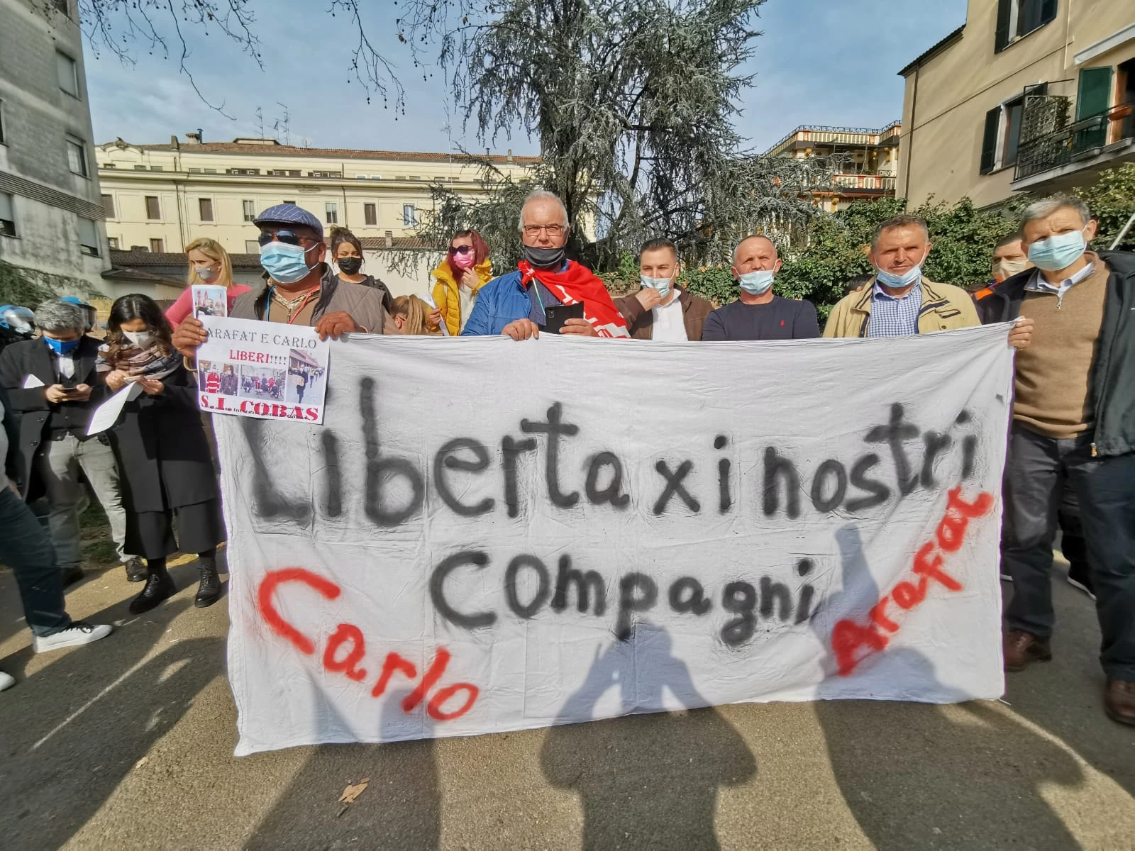 Oltre mille manifestanti da tutta Italia, iscritti ai Si Cobas e militanti della sinistra antagonista. Riuniti in un solo coro: “Carlo e Arafat liberi”. Il riferimento è a Carlo Pallavicini e Arafat, leader del sindacato arrestati nei giorni scorsi dalla polizia dopo gli scontri del 1 febbraio davanti alla TNT. I manifestanti si sono radunati alle porte del Pubblico Passeggio e a turno hanno lanciato messaggi di supporto ai militanti coinvolti nell’operazione delle forze dell’ordine.