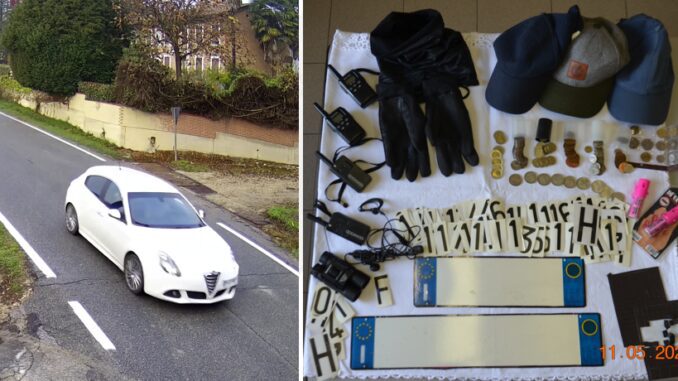 Durante l’esecuzione dell’ordinanza, i carabinieri hanno proceduto anche al sequestro dell’auto utilizzata per commettere furti, nonché vari indumenti per il travisamento, spray urticanti, materiale pirotecnico funzionale ai raggiri, ricetrasmittenti, targhe contraffatte e materiale per clonare targhe di auto.