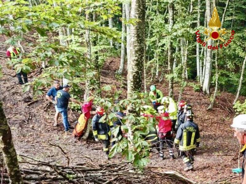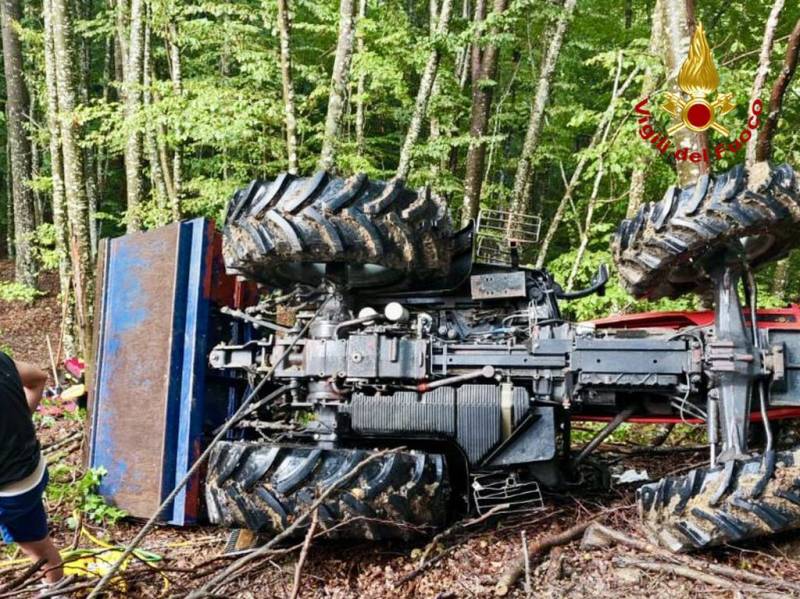 Il trattore su cui stava lavorando si è ribaltato, in un punto al limite del bosco particolarmente impervio.