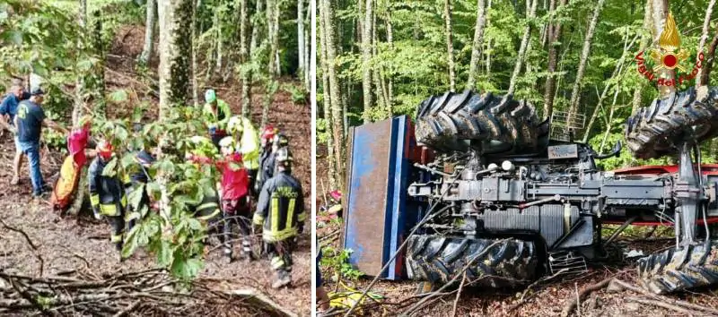 Il trattore su cui stava lavorando si è ribaltato, in un punto al limite del bosco particolarmente impervio.