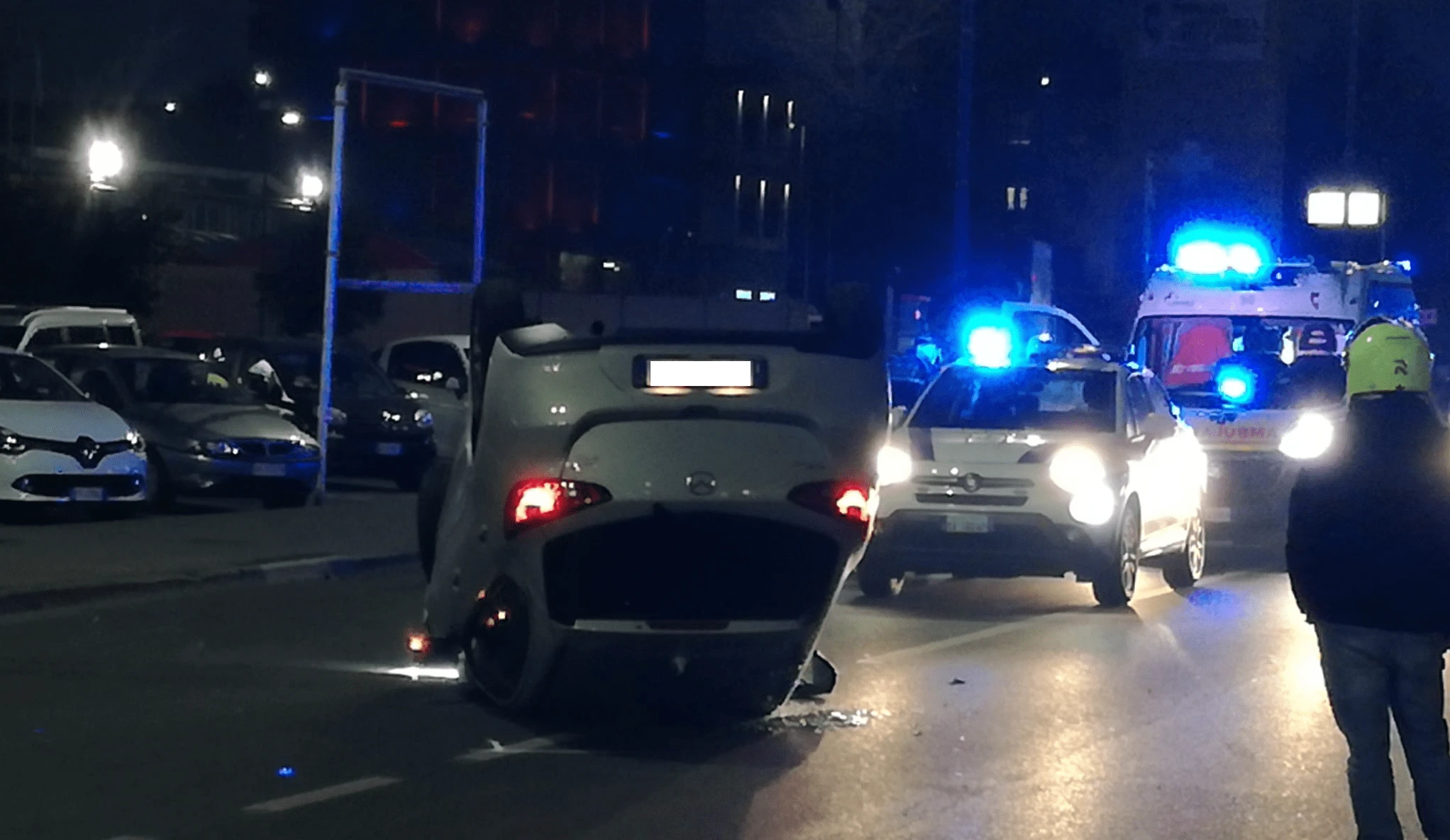 Dopo lo schianto si ribalta in mezzo alla strada. I fatti sono accaduti in via Colombo questo pomeriggio. Da una prima ricostruzione pare che un uomo al volante di una Mazda abbia perso il controllo del mezzo andando a scontrarsi contro una Fiat Panda parcheggiata a bordo strada, con una donna ancora all’interno dell’abitacolo. Dopo l’impatto la Mazda si è ribaltata in mezzo alla carreggiata.