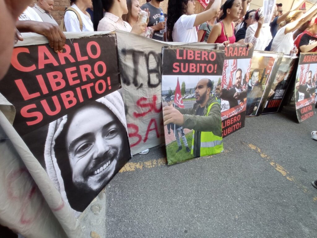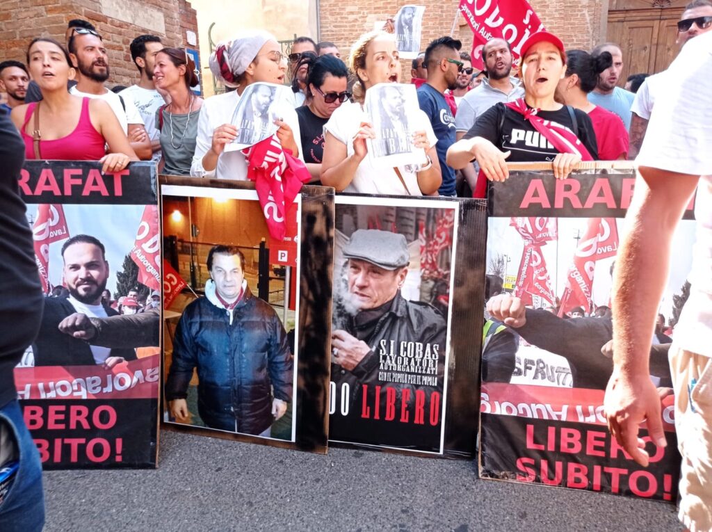 Sindacalisti arrestati, sono comparsi davanti al giudice per le indagini preliminari Carlo Pallavicini, Mohamed Arafat, Aldo Milani e Bruno Scagnelli. I quattro vertici del Si Cobas sono stati accolti da un nutrito gruppo di manifestanti che hanno allestito un presidio chiedendo a gran voce la libertà per i quattro arrestati.