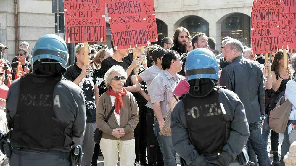 Al centro della polemica l’area pubblica Spazio 4.0 e il cambio gestione della struttura. Ecco allora cori e canti contro l’amministrazione. Ma anche cartelli riportanti slogan. Tra questi, due hanno mandato su tutte le furie il membro della giunta: “L’assessore Zandonella organizza raduni nazifascisti” e “La giunta Barbieri chiude spazi sociali e li assegna ai nazifascisti”.