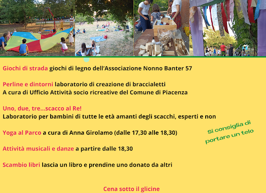 L’iniziativa, organizzata dall’Associazione Le Valigie, si svolge in collaborazione con Nonno Banter 57 aps, Anna Girolamo Yoga, Comitato Unicef Piacenza e Ufficio Attività socio-ricreative del Comune di Piacenza.