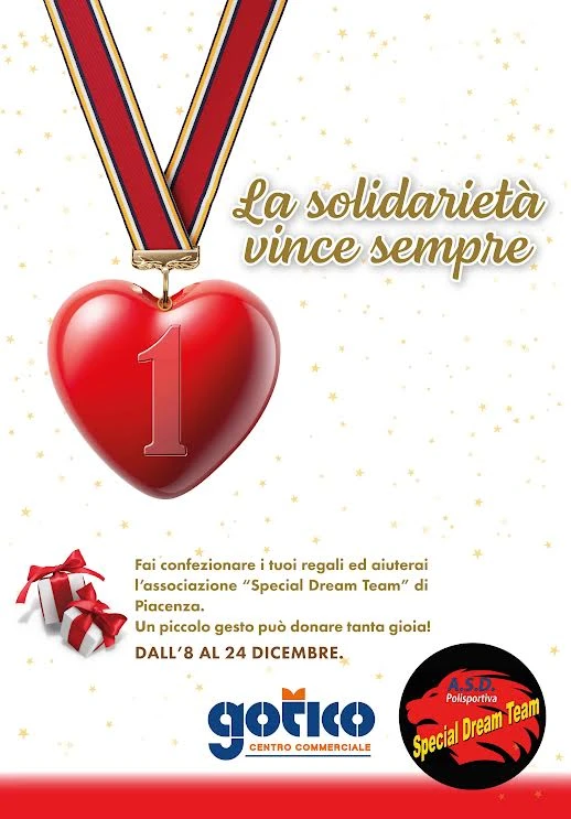 Da venerdì 8 fino al 24 dicembre, sarà messo a disposizione dei volontari dell’associazione A.S.D polisportiva – Special Dream Team uno stand, allestito all’interno del Centro Gotico, dove i clienti del centro commerciale, potranno far impacchettare i loro regali. Con un’offerta simbolica di 1€ sarà possibile contribuire a un importante progetto. La carta dei regali confezionati al Centro Gotico vale tanto sostegno!