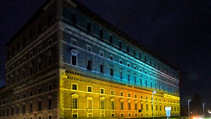 Si illuminerà dei colori della bandiera ucraina, da questa sera in avanti, la facciata di Palazzo Farnese: “Un gesto semplice, ma doveroso e sentito – sottolinea il sindaco Patrizia Barbieri – per esprimere la solidarietà dell’Amministrazione comunale e della città di Piacenza a un Paese la cui sovranità e indipendenza sono stati così brutalmente violati, stringendoci idealmente a tutto il popolo ucraino e ai connazionali che vivono sul nostro territorio, di cui condividiamo l’apprensione per i propri cari e la volontà di portare aiuto laddove più ce n’è bisogno”.