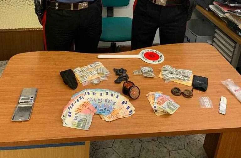 I militari hanno deciso di perquisire il mezzo; ed infatti, in vari scomparti dell’abitacolo della vettura hanno trovato complessivamente circa 60 grammi di marijuana suddivisi in 38 bustine di vario peso : 1 grammo, 1 grammo e mezzo, 2 grammi ed una di 10 grammi. Addosso invece il giovane pusher, nelle tasche dei pantaloni, aveva un grinder con tracce della stessa sostanza stupefacente e delle cartine. Nel portafogli aveva 1.035 €, tutti in banconote di piccolo taglio da 20, 10 e 5 euro, probabile provento di spaccio. In casa hanno trovato un bilancino di precisione e numerosissime bustine per il confezionamento di dosi di stupefacente.