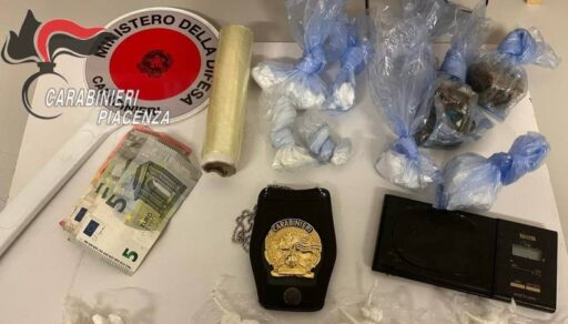 I carabinieri dell’Aliquota Radiomobile di Fiorenzuola d’Arda fermano e arrestano un individuo irregolare con un considerevole quantitativo di stupefacenti, tra cui cocaina, hashish ed eroina.