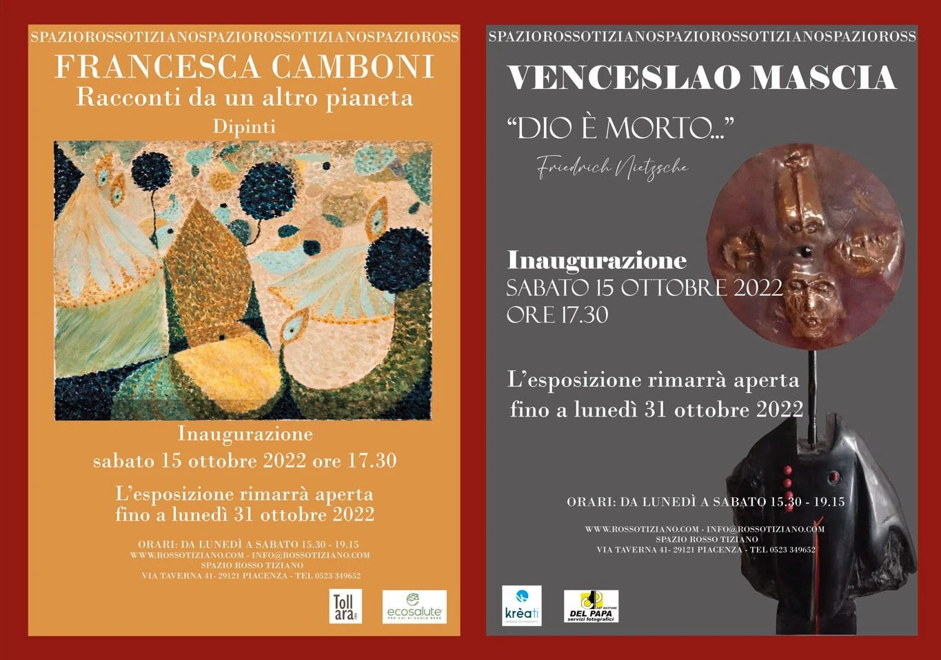 Spazio Rosso Tiziano, inaugurazione di due mostre il 15 ottobre.