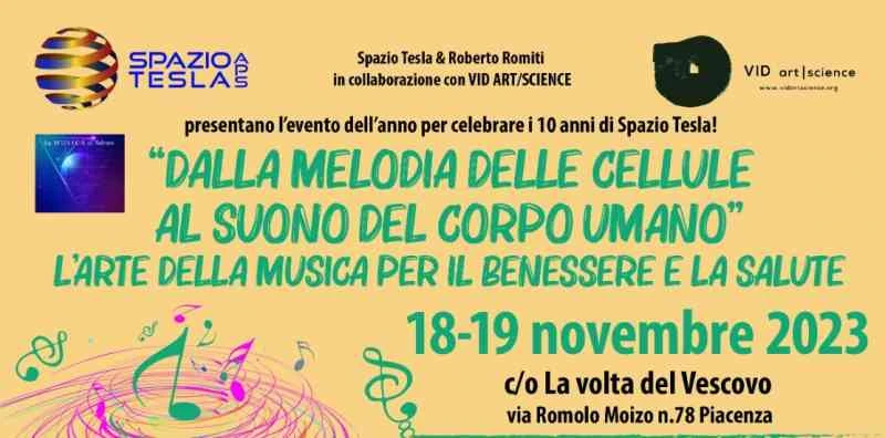 Spazio Tesla festeggia i 10 anni di attività con un’importante convegno dal titolo “Dalla melodia delle cellule al suono del corpo umano” l’arte della musica per il benessere e la salute. Il convegno si svolgerà sabato 18 e domenica 19 novembre c/o la Volta del Vescovo in via Moizo 78 a Piacenza, ed è espressione del progetto “La musica ci salverà!” fortemente voluto da Alberto Negri e Laura Groppi fondatori di Spazio Tesla, intitolata al grande scienziato Nikola Tesla, e condiviso con i partner Roberto Romiti e Rino Capitanata.