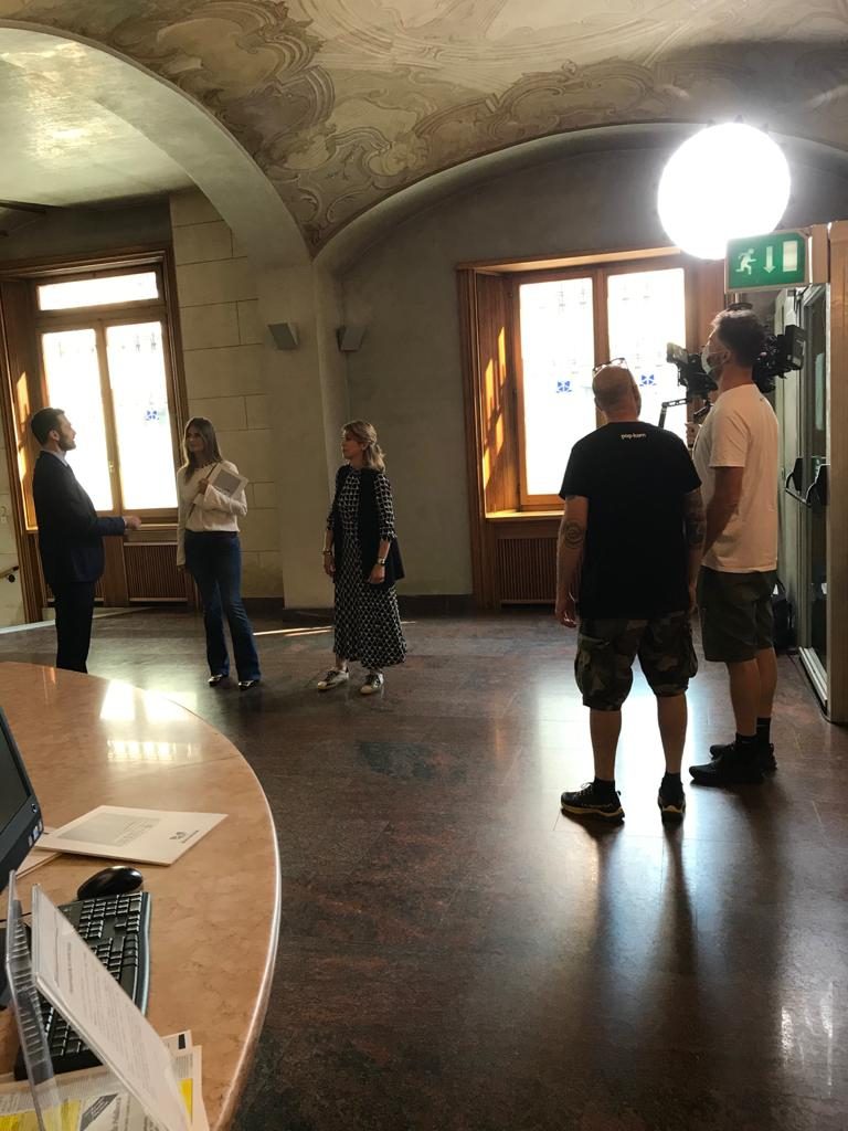 Un giornale online piacentino, qualche giorno fa, ha riferito della curiosità suscitata dalla presenza, in centro città, di una troupe che stava compiendo riprese – armata di telecamere, microfoni, luci, mixer video – all’interno di negozi e pubblici esercizi. Alla domanda dei passanti (“state girando un film o un programma Tv?”) era stato risposto che non si poteva al momento rivelare nulla, lasciando un velo di mistero che sta per essere alzato.