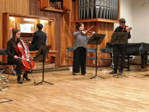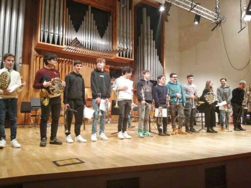 Pochi giorni fa decine di studenti delle scuole del territorio hanno assistito allo spettacolo “Squillanti presenze!”: un vivace incrocio di note con trombe, tromboni, archi e organo. In scena studenti e docenti del Conservatorio e di un istituto bresciano che hanno eseguito un programma davvero articolato e affascinante: da Claudio Monteverdi (Deus, in adjutorium da Vespro della Beata Vergine), Dietrich Buxtehude (Fanfara e coro) a Giovanni Gabrieli (Sonata Pian e forte) e Peter Ilic Tchaikowsky (Marcia e Trepak da Schiaccianoci) passando per il Mozart della Sonata da chiesa in Re maggiore KV 245 e della Sonata da chiesa in Re maggiore KV 144/124a fino a Vivaldi (Concerto in la min. per 2 violini e basso continuo) e Bach (Concerto in la min. BWV 1041 per violino e basso continuo; Suite n. 2 in re min. per violoncello solo-Sarabanda).