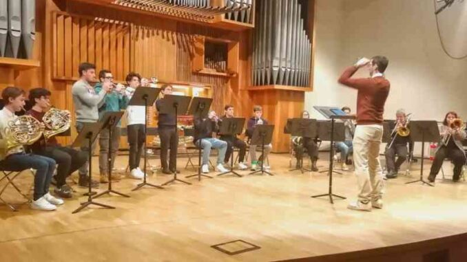 Pochi giorni fa decine di studenti delle scuole del territorio hanno assistito allo spettacolo “Squillanti presenze!”: un vivace incrocio di note con trombe, tromboni, archi e organo. In scena studenti e docenti del Conservatorio e di un istituto bresciano che hanno eseguito un programma davvero articolato e affascinante: da Claudio Monteverdi (Deus, in adjutorium da Vespro della Beata Vergine), Dietrich Buxtehude (Fanfara e coro) a Giovanni Gabrieli (Sonata Pian e forte) e Peter Ilic Tchaikowsky (Marcia e Trepak da Schiaccianoci) passando per il Mozart della Sonata da chiesa in Re maggiore KV 245 e della Sonata da chiesa in Re maggiore KV 144/124a fino a Vivaldi (Concerto in la min. per 2 violini e basso continuo) e Bach (Concerto in la min. BWV 1041 per violino e basso continuo; Suite n. 2 in re min. per violoncello solo-Sarabanda).