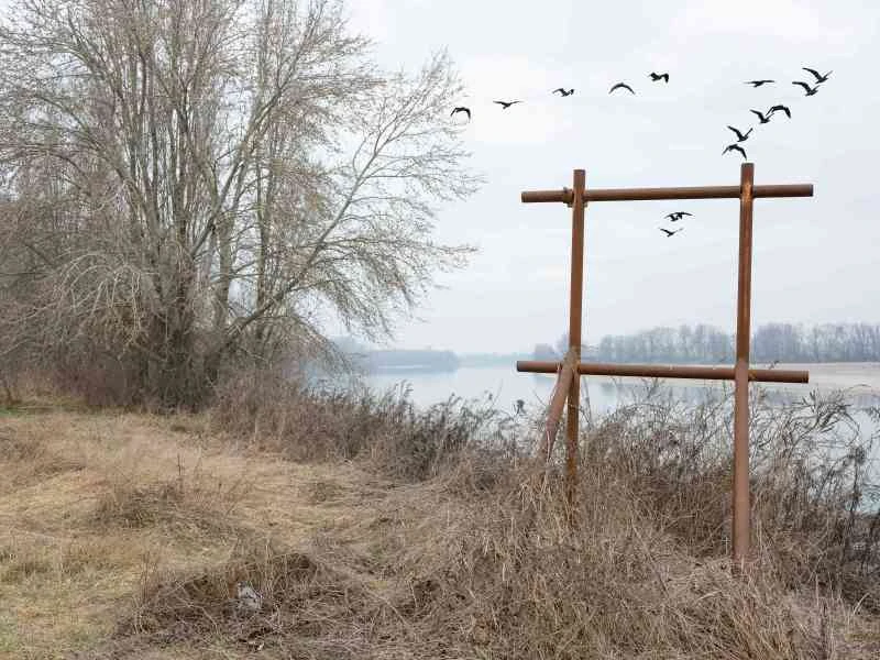 Il Grande fiume visto con un occhio un po’ diverso dal solito. Così si potrebbe sintetizzare il contenuto del libro dedicato al Po, visto per una volta dando le spalle all’acqua. Nella serie di immagini – catturate da Pieve Porto Morone fino all’estrema provincia di Reggio Emilia (Ponte sull’Oglio), passando per Castelsangiovanni, Piacenza (Mortizza), Cremona, Polesine Parmense, Brescello, Guastalla – viene infatti rappresentato l’intervento dell’uomo a ridosso del fiume, sull’argine maestro, luogo frequentato dagli amanti delle passeggiate. Piccole case, corti, vecchie osterie, simboli religiosi presenti per esorcizzare il pericolo delle piene. Un mondo, insomma, raccontato da tanti scrittori del calibro di Zavattini, Brera, Rumiz.