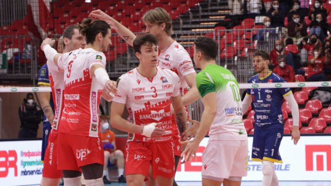 Due ore e un quarto di battaglia, una valanga di emozioni e un PalabancaSport a tratti entusiasta. Finisce 3-2 per Modena il derby della via Emilia, ma la Gas Sales Piacenza si merita gli applausi per una rimonta incredibile. Sotto 2-0 i biancorossi cambiano ritmo, trascinati da un ottimo Stern (21 punti per lui in due parziali più il tie break) agguantano gli avversari e portano la sfida al set corto dove cedono solamente allo sprint.