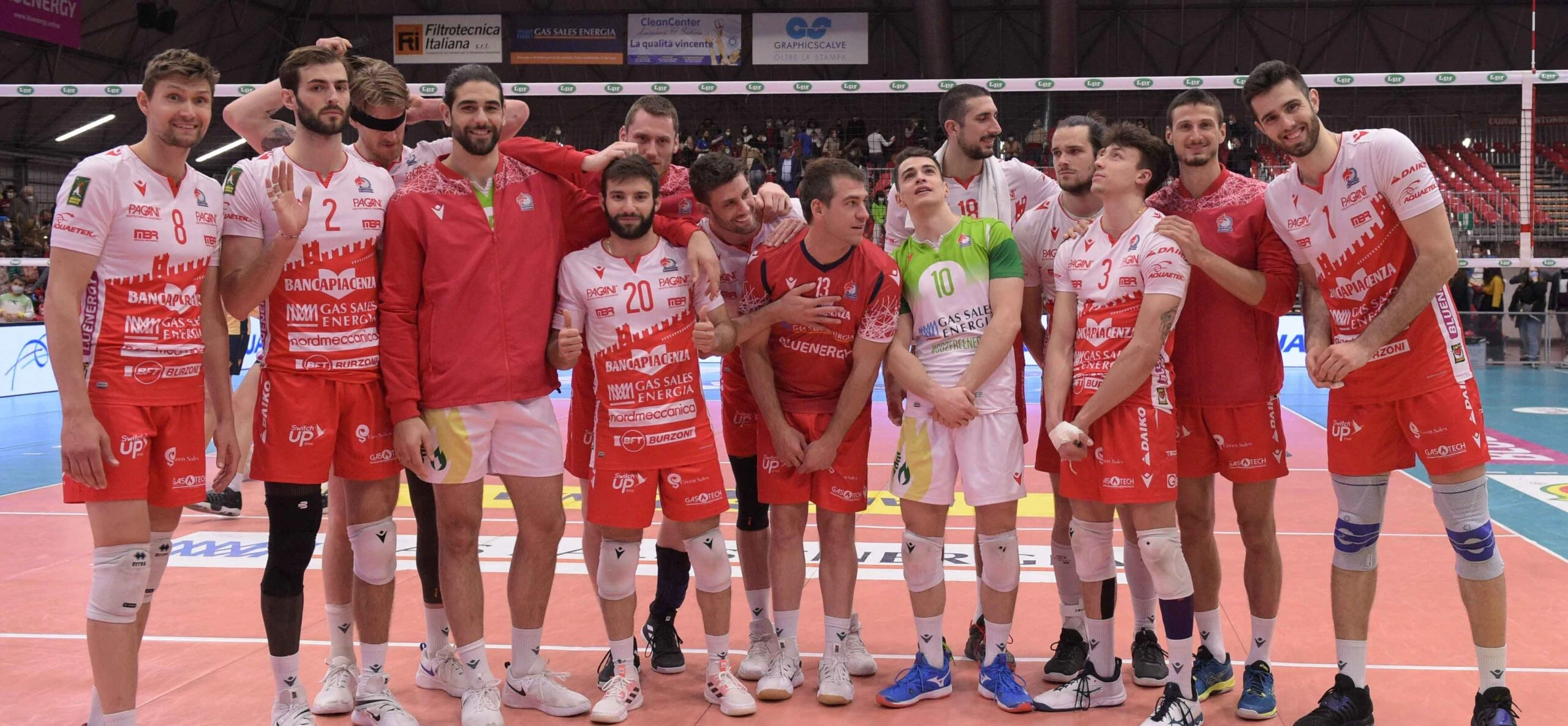 GAS SALES PIACENZA: Lagumdzija 25, Russell 19, Recine 8, Brizard 7, Holt 9, Caneschi 9, Scanferla (L); Antonov, Cester 2, Catania. N.e.: Stern, Tondo, Rossard, Pujol. All. Lorenzo Botti, v.all. Massimo Botti