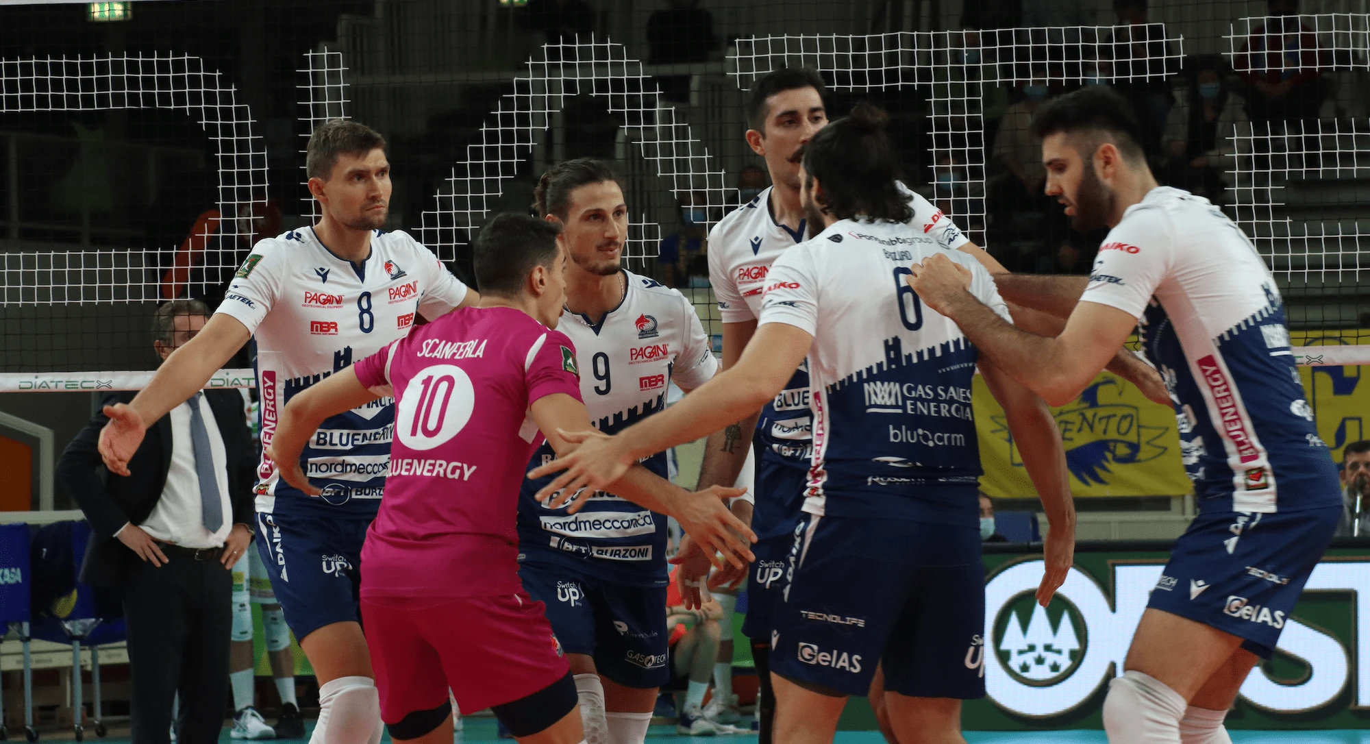 Itas Trentino: Sbertoli 6, Kaziyski 16, Lisinac 15, Lavia 10, Michieletto 15, D’Heer 8, De Angelis (L), Zenger (L), Sperotto 0, Pinali 0. N.E. Albergati, Cavuto. All. Lorenzetti.