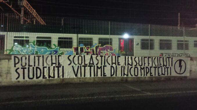 “Politiche scolastiche insufficienti. Studenti vittime di incompetenti” questo il testo dello striscione affisso dai militanti del Blocco Studentesco contro