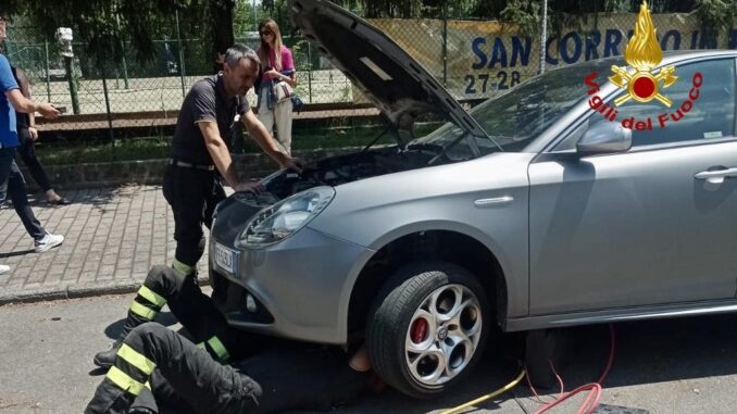 Un gattino incastrato nel motore di una vettura in via Lanza, i vigili del fuoco si mettono al lavoro