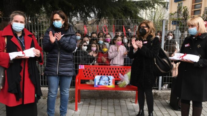 Una panchina rossa per dire no alla violenza sulle donne, in via Vaiarini nel ricordo di Zahira