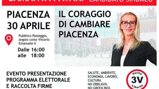 Sabato 30 aprile comizio di Samanta Favari, la candidata sindaco del Movimento 3V si presenta alla città