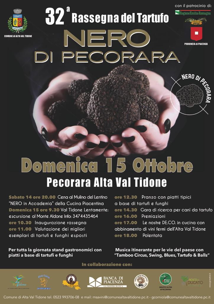 La rassegna, che ha il patrocinio di Regione Emilia-Romagna e di Provincia di Piacenza, è promossa e organizzata dal Comune di Alta Val Tidone in collaborazione con la Pro Loco di Pecorara, la sezione Emilia-Romagna dell’Associazione Nazionale Tartufai Italiani, l’Associazione provinciale tartufai piacentini, il Gruppo alpini di Pecorara, il Bosco del Ducato e la Banca di Piacenza.