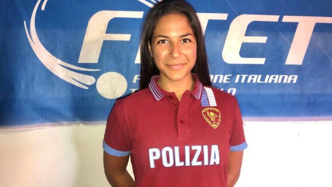 Jamila Laurenti, atleta dei Gruppi Sportivi della Polizia di Stato – Fiamme Oro. La 17enne azzurra ha sempre dimorato prima a Formia e ora a Terni presso il centro federale delle nazionali. E’ sempre in pianta stabile in azzurro fin dalla nazionale mini-cadette ora in quella Juniores. Si presenta con un curriculum internazionale di tutto rispetto.