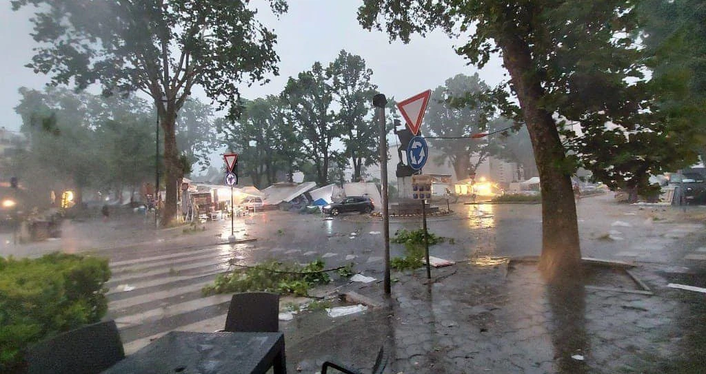 “Un disastro, il temporale ha distrutto tutto, la merce esposta all’acqua, una cosa impressionante”, commenta Mario, ambulante titolare di una paninoteca. “Veniamo da due anni difficili e queste fiere per noi rappresentano una ripartenza: io personalmente puntavo molto sulla serata e quello che è successo ha rappresentato un danno importante per la mia attività. Io ho avuto danni, ma fortunatamente posso continuare a lavorare. Altri, invece, hanno avuto ombrelloni distrutti e dovranno attendere”.