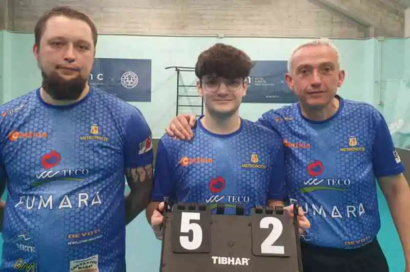 Tennistavolo Cortemaggiore ha conquistato la promozione anticipata in Serie B1 nazionale grazie alla vittoria per 5-2 in trasferta contro il Klaus Walsch Montichiari. Un successo atteso e sofferto, che ha permesso alla squadra piacentina di festeggiare con due giornate di anticipo il salto di categoria. Nonostante il punteggio finale, l’incontro non è stato semplice. I piacentini non hanno espresso il loro miglior gioco e hanno dovuto affrontare un avversario combattivo, in particolare Maccabiani, che ha superato prima Calarco e poi Sazonov. Quest’ultimo ha rischiato molto anche contro Rad, ma alla fine la squadra di Cortemaggiore ha portato a casa la vittoria decisiva.
