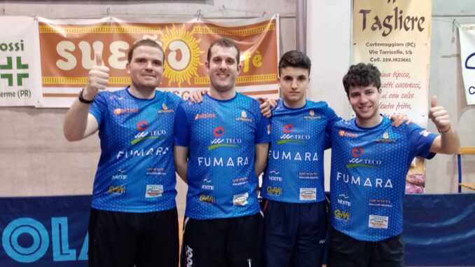 Dopo un campionato che l’ha vista dominare incontrastata, sabato a Busnago la Teco Fumara potrebbe festeggiare anticipatamente la promozione in serie B. Una squadra fin dall’inizio costruita per tentare il salto di categoria e riportare, dopo varie sfortune e vicissitudini, i colori biancorossi in una categoria più consona al suo livello. Teco in scena col capitano Simone Dernini, affiancato da Stefano Bornia, la scommessa italoargentina Nicolas Heis e il giovane Dylan Baroni.