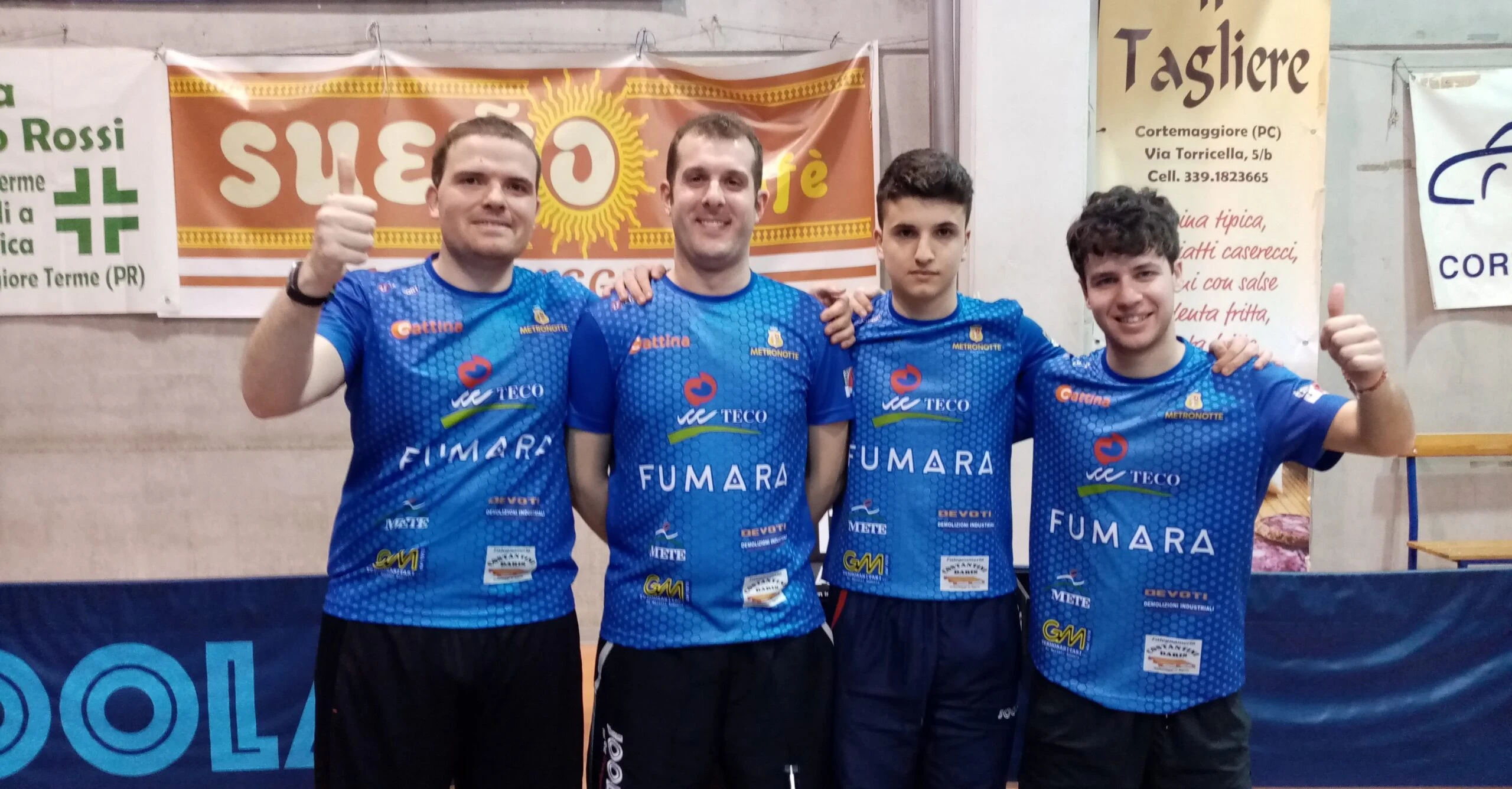 Dopo un campionato che l’ha vista dominare incontrastata, sabato a Busnago la Teco Fumara potrebbe festeggiare anticipatamente la promozione in serie B. Una squadra fin dall’inizio costruita per tentare il salto di categoria e riportare, dopo varie sfortune e vicissitudini, i colori biancorossi in una categoria più consona al suo livello. Teco in scena col capitano Simone Dernini, affiancato da Stefano Bornia, la scommessa italoargentina Nicolas Heis e il giovane Dylan Baroni.