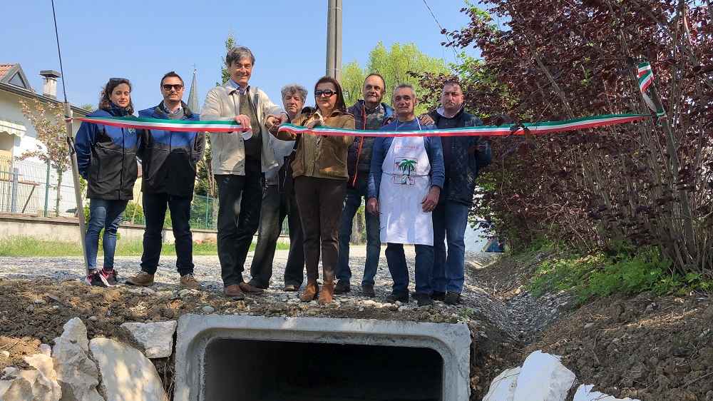 A presentare l’intervento, una volta terminati i lavori . Patrizia Calza con Natalino Foletti e Cristian Rapetti (rispettivamente Sindaco, geometra e operaio del comune di Gragnano Trebbiense), Fausto Zermani con Attilio Sfolcini, Chiara Celada e Simone Razza (rispettivamente Presidente, amministratore, progettista e tecnico del Consorzio di Bonifica di Piacenza) e alcuni cittadini gragnanesi.