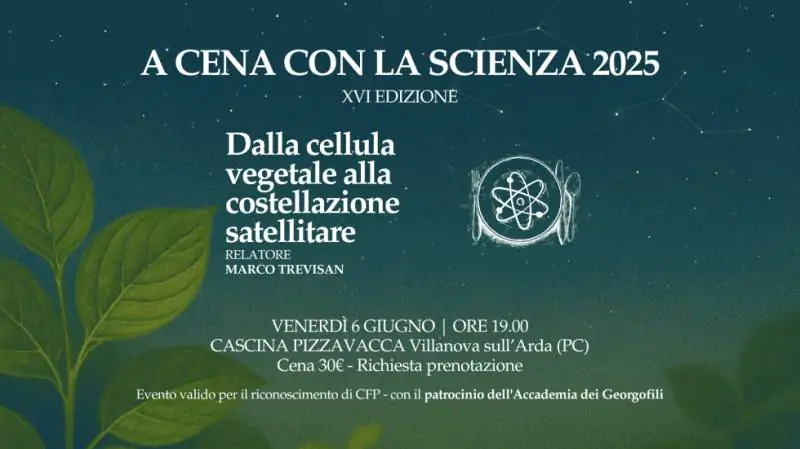 Venerdì’, 6 giugno, si terrà all’agriturismo Cascina Pizzavacca il terzo incontro dell’edizione 2025 di A CENA CON LA SCIENZA.
