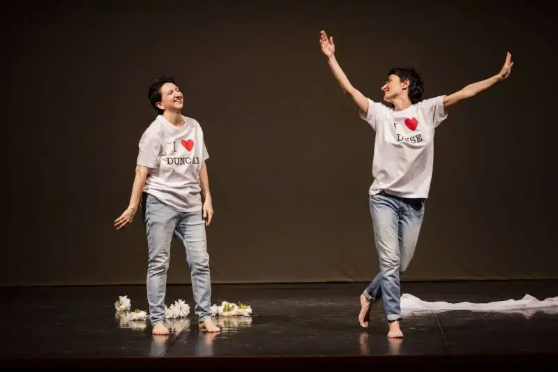 L’opera porta sul palco l’incontro, reale e immaginato, tra le due artiste contemporanee e due monumenti della storia dello spettacolo come Isadora Duncan ed Eleonora Duse. Un dialogo tra epoche, linguaggi e corpi che attraversa danza, teatro e comicità con una leggerezza affilata.
