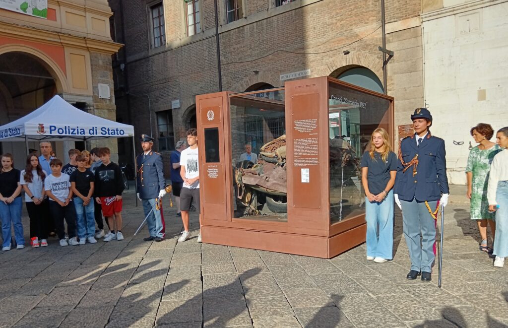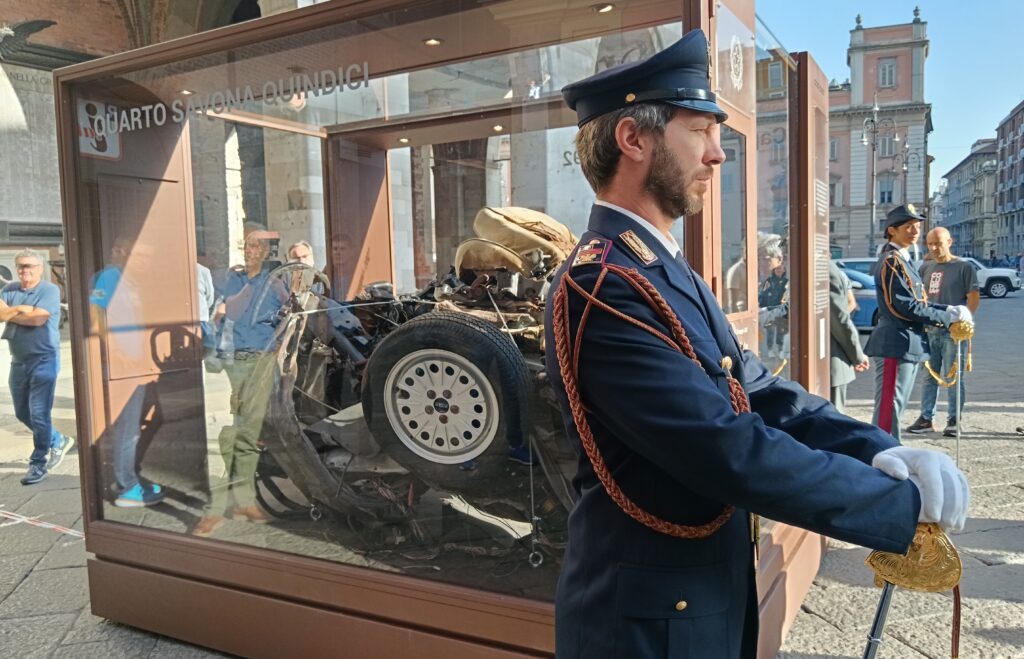 Prima dell’incontro, proprio davanti all’ingresso del Palazzo Gotico, è stata posizionata la teca in cui sono conservati i resti della Fiat Croma blindata “Quarto Savona 15”. Un simbolo perché possa rimanere nella memoria collettiva della città e dei ragazzi presenti.