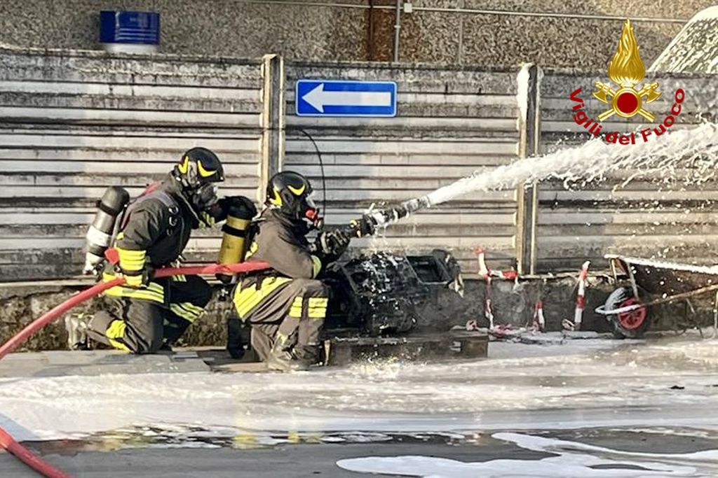 Sul posto sono immediatamente intervenuti i vigili del fuoco che hanno domato le fiamme impedendo che il rogo si allargasse ad altre vetture o alla struttura dell’azienda.