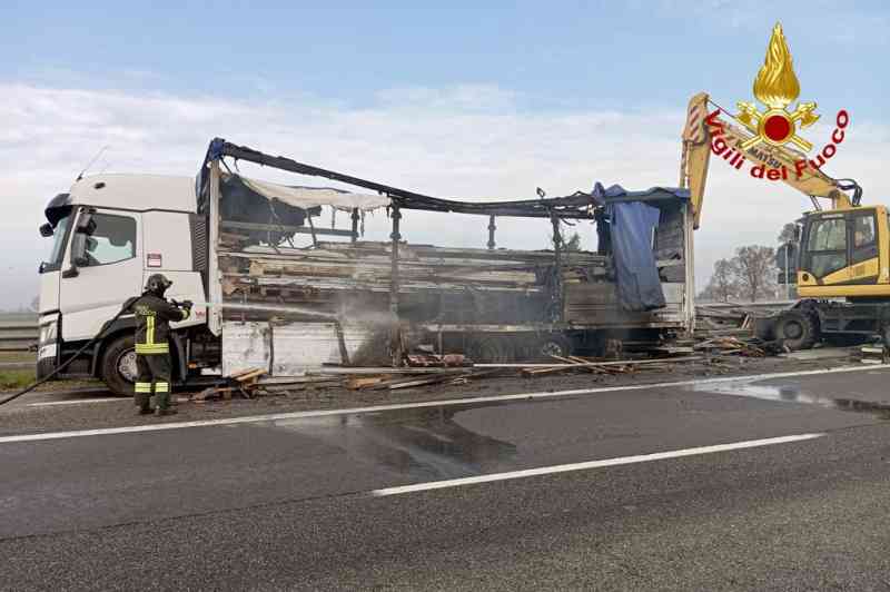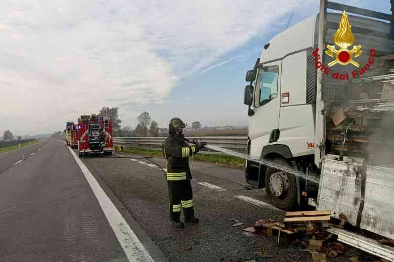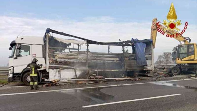 Tir in fiamme lungo l’autostrada A21, pesanti disagi al traffico. I fatti sono accaduti questa mattina intorno alle 7, lungo il tratto Castelvetro e Caorso, in direzione Torino. Un tir, per motivi da chiarire, ha preso fuoco. Fortunatamente il conducente è riuscito a fuggire in tempo dall’abitacolo. Il mezzo pesante è rimasto avvolto dalle fiamme fino all’arrivo dei vigili del fuoco da Piacenza e Cremona che hanno estinto il rogo. Come detto, pesanti i disagi al traffico.