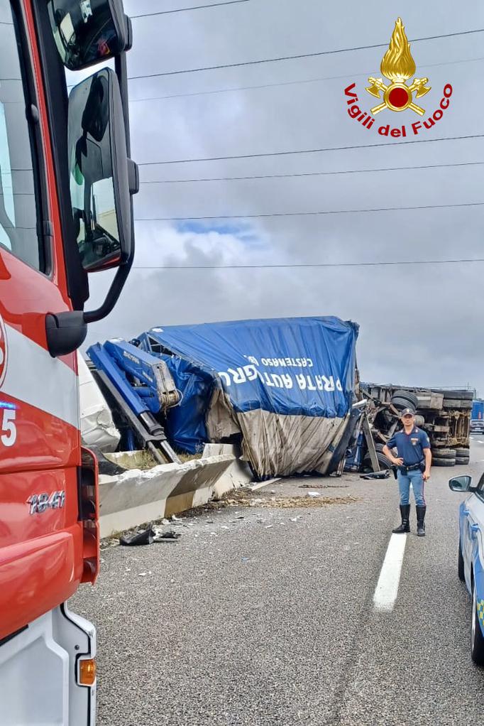 Dopo aver sbandato ha travolto lo spartitraffico centrale invadendo la corsia opposta. Fortunatamente il mezzo pesante non ha travolto altre vetture.