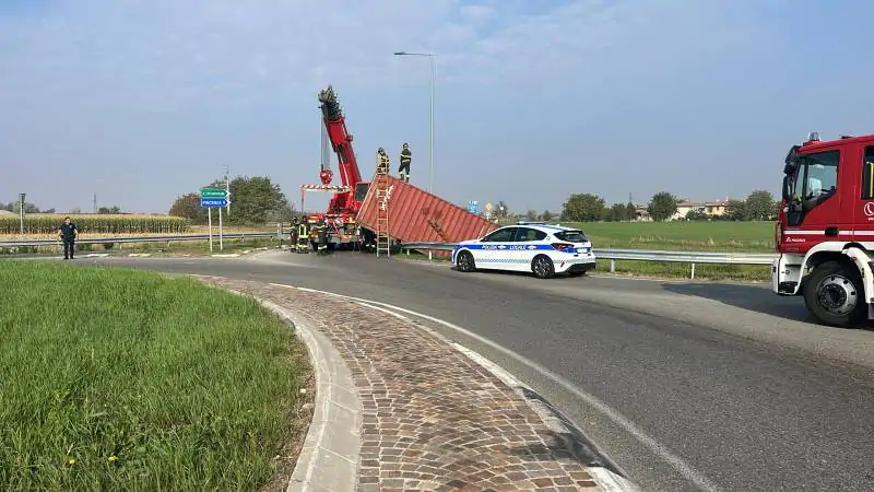 Il container è finito a cavallo del guardrail, invadendo comunque la carreggiata. Sul posto sono intervenuti i vigili del fuoco che hanno lavorato per recuperare il carico e mettere in sicurezza la zona.