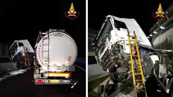 Per motivi da chiarire, il 59enne ha perso il controllo del tir e si è schiantato contro la protezione in ferro della carreggiata. Nell’impatto il parabrezza è andato in frantumi e il conducente è stato sbalzato dall’abitacolo cadendo lungo una scarpata.